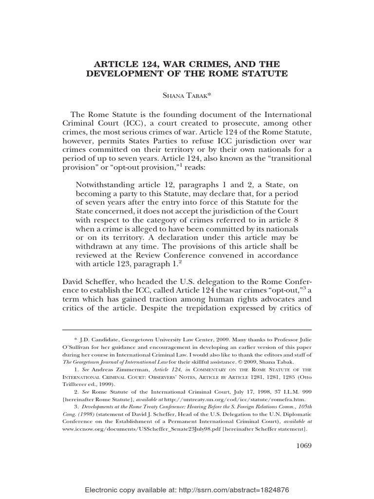Article 124 War Crimes and The Development of The Rome Statute PDF